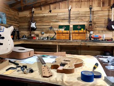 Custom guitars built from cured Tennessee wood right off the farm.